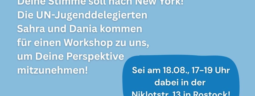 Deine Stimme soll nach New York! Die UN-Jugenddeligierten Sahra und Dania kommen fĂĽr einen Workshop zu uns, um deine Perspektive mitzunehmen!